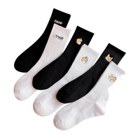2025 Novo Bonito Bordado Bonito Meia Cão Modelado Branco Algodão Mid Tubo Meias